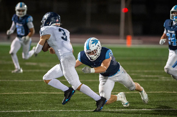 Corona del Mar coach Kevin Hettig praised both Lucas and the offensive line, which featured Aziz Altuwaijri, Damian Zeno-Herrera, Landon Rucker, Anthony Hastings, and Judah Snow. “…if we are blocking it cleanly, he (Wyatt) is going to make some big plays. Up front, we were really good tonight,” said Hettig.