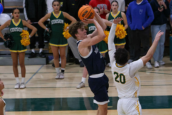 The first quarter set the tone for a back-and-forth contest, with Edison jumping out to a slight 11-9 lead. Both teams struggled to find offensive rhythm early, with turnovers and missed opportunities keeping the game within reach for both sides. Newport Harbor’s Jack Berry led his team’s effort, finishing with 19 points, including seven clutch free throws. His performance was pivotal in keeping the Sailors competitive throughout the game.