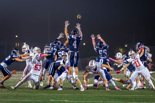 After a scoreless first quarter, Tesoro scored first off a 25-yard field goal from Kayden Cross to go up 3-0. Newport Harbor got a big 75-yard kickoff return from the Sailors’ five-yard line which put the team in prime position. But on a 4th and 15, Meer threw the ball into the endzone for an interception, which was most likely going to be designed as an arm punt, but was returned for a 103-yard pick six. Later in the quarter, the Titans added another touchdown from Nic Brubak.